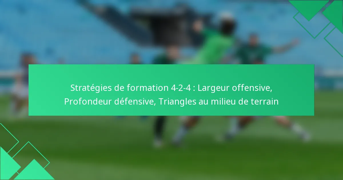 La formation 4-2-4 est un schéma tactique dynamique qui met l’accent sur des techniques d’espacement efficaces, la gestion de la largeur et des stratégies de surcharge. En optimisant le positionnement des joueurs, les équipes peuvent créer des lignes de passe et exploiter les failles défensives, améliorant ainsi le jeu offensif et défensif. Une gestion adéquate […]