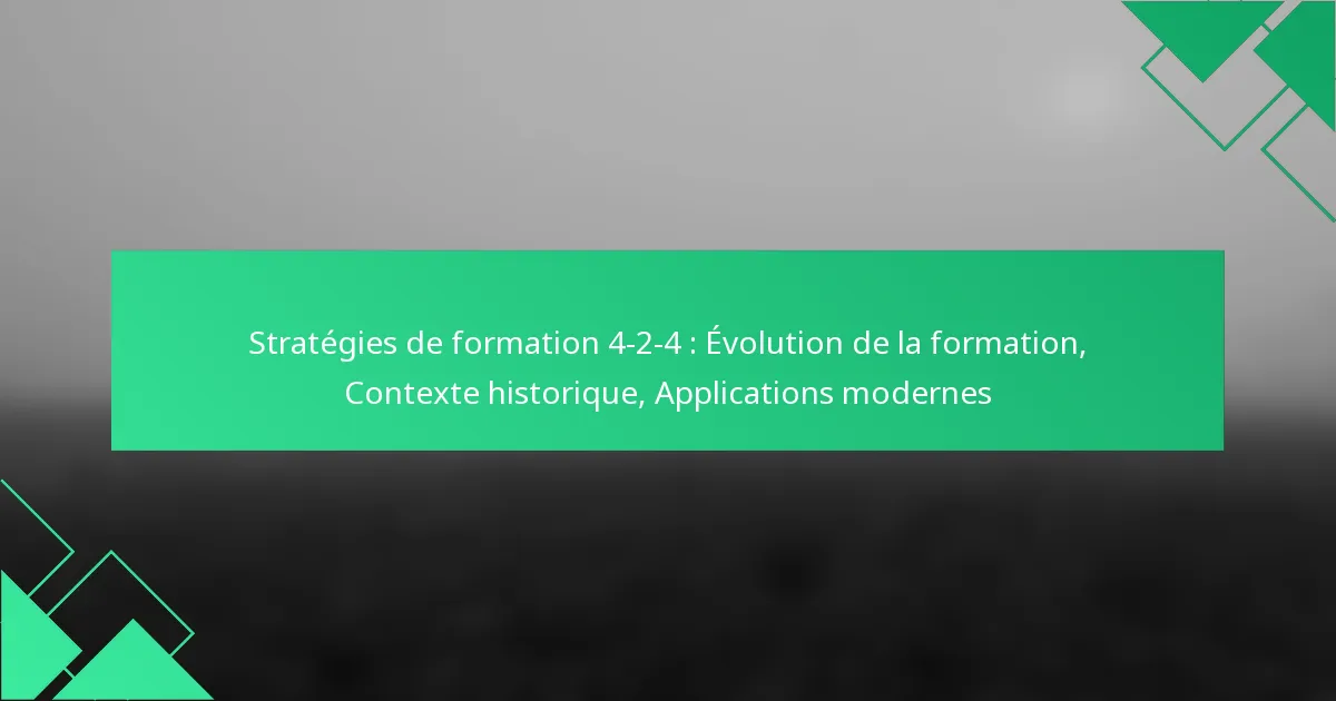 La formation 4-2-4 est une configuration tactique dynamique dans le football qui équilibre l’ambition offensive avec la stabilité défensive, comprenant quatre défenseurs, deux milieux de terrain et quatre attaquants. Sa capacité d’adaptation permet aux équipes de modifier leurs stratégies en réponse à différents adversaires et situations de jeu, garantissant à la fois une solidité défensive et une efficacité offensive. En analysant les formations et les faiblesses des adversaires, les équipes peuvent optimiser leur approche pour améliorer leur performance sur le terrain.