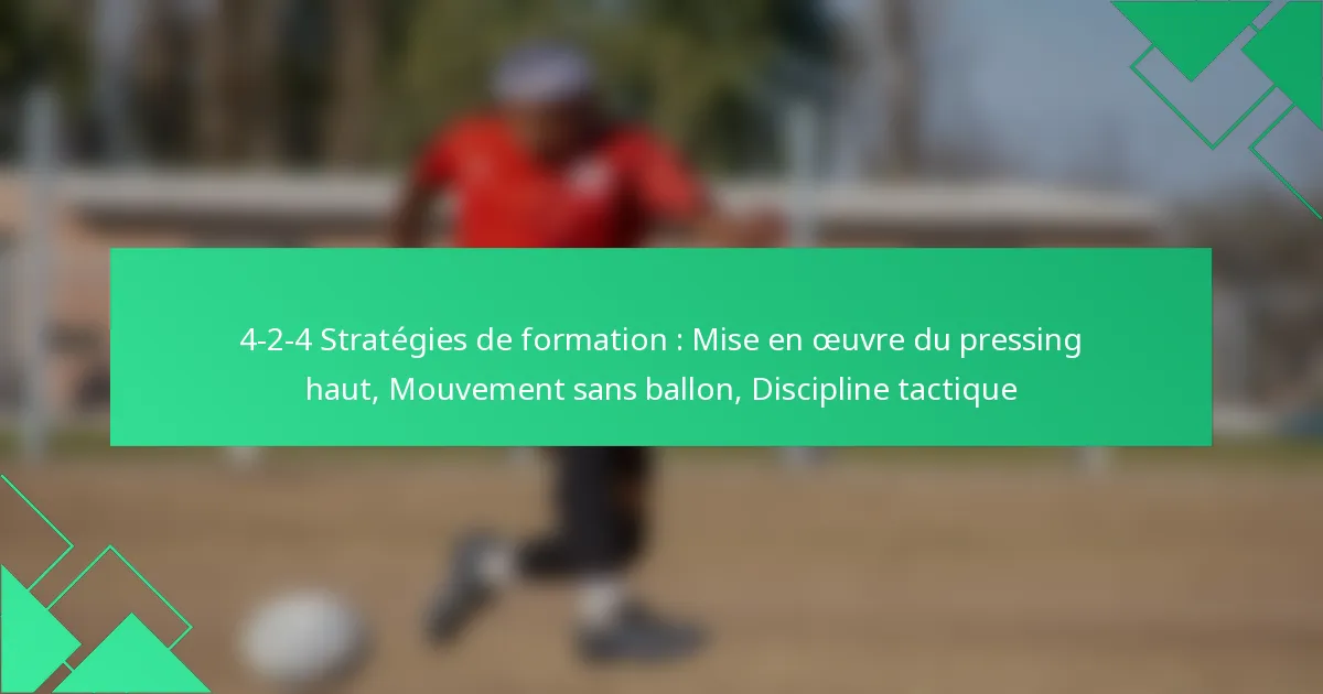 La formation 4-2-4 est une configuration tactique dynamique dans le football qui équilibre une forte présence offensive avec une structure défensive solide. En mettant en œuvre un pressing haut, les équipes peuvent efficacement récupérer la possession et perturber les adversaires, tandis qu’un mouvement stratégique sans ballon renforce la cohésion de l’équipe et crée des occasions de marquer. Cette combinaison de tactiques nécessite discipline et coordination pour maximiser le potentiel de la formation sur le terrain.