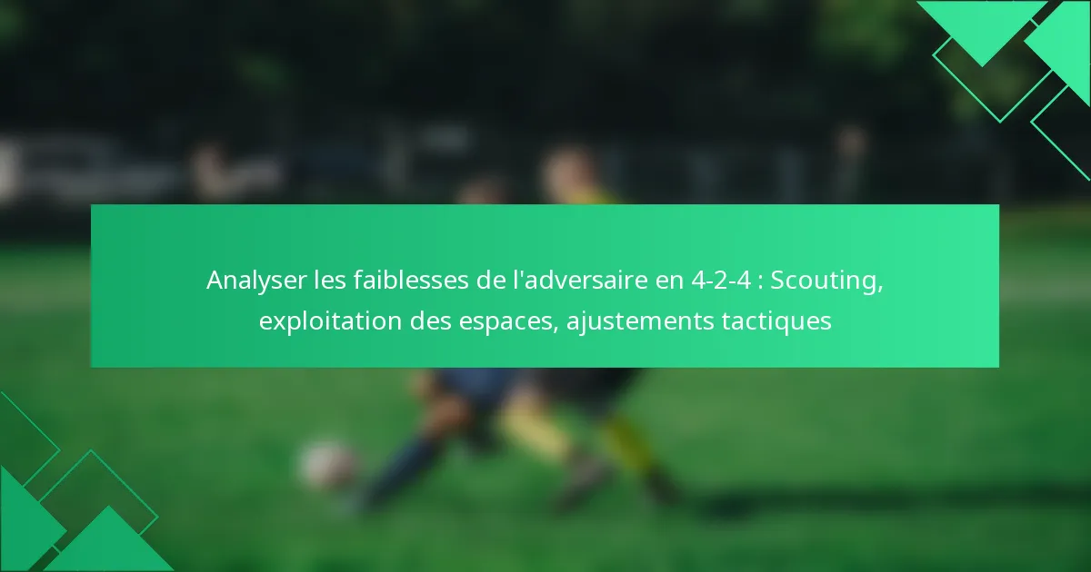 Quelles sont les caractéristiques clés de la formation 4-2-4 ? Comment les équipes peuvent-elles efficacement analyser leurs adversaires en utilisant le 4-2-4 ? Quelles stratégies peuvent être utilisées pour exploiter les failles de la formation 4-2-4 ? Quels ajustements tactiques les équipes peuvent-elles apporter contre le 4-2-4 ?