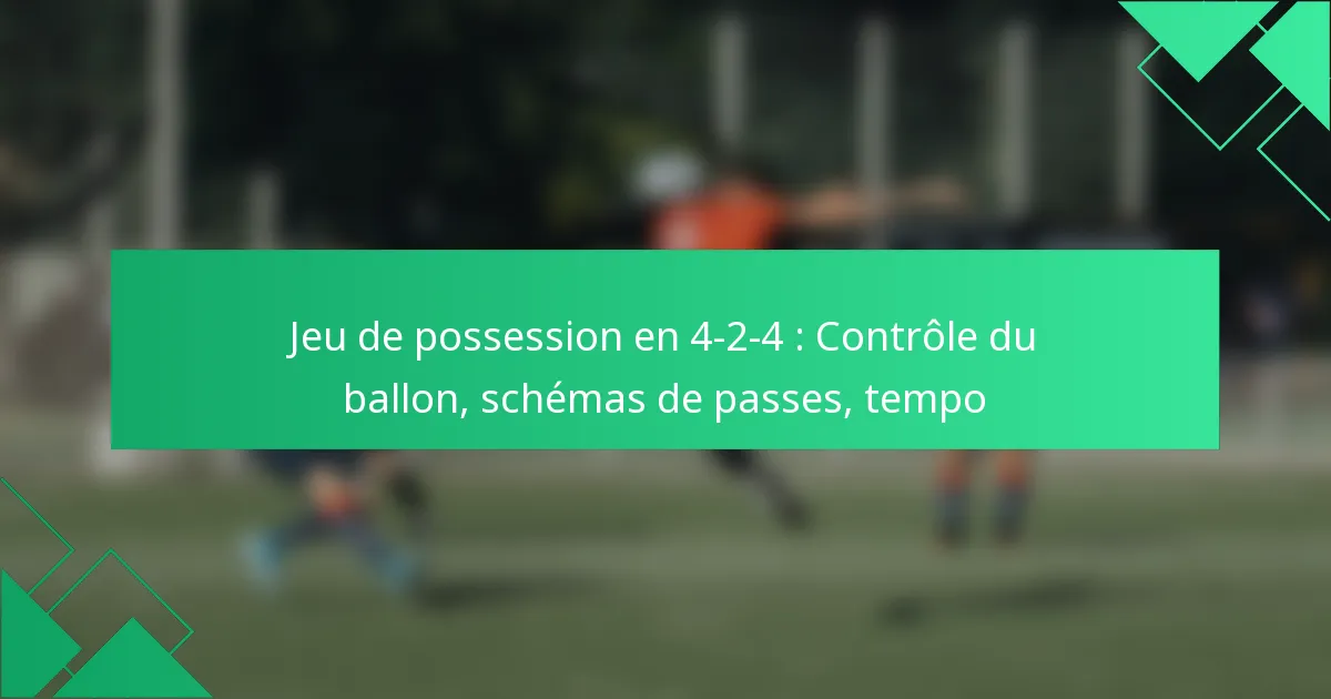 Qu’est-ce que le jeu de possession au football ? Comment le contrôle du ballon influence-t-il le jeu de possession en 4-2-4 ? Quels sont les schémas de passes efficaces en 4-2-4 ? Comment le tempo influence-t-il le jeu de possession ? Quels sont les points forts et les faiblesses de la formation 4-2-4 ?